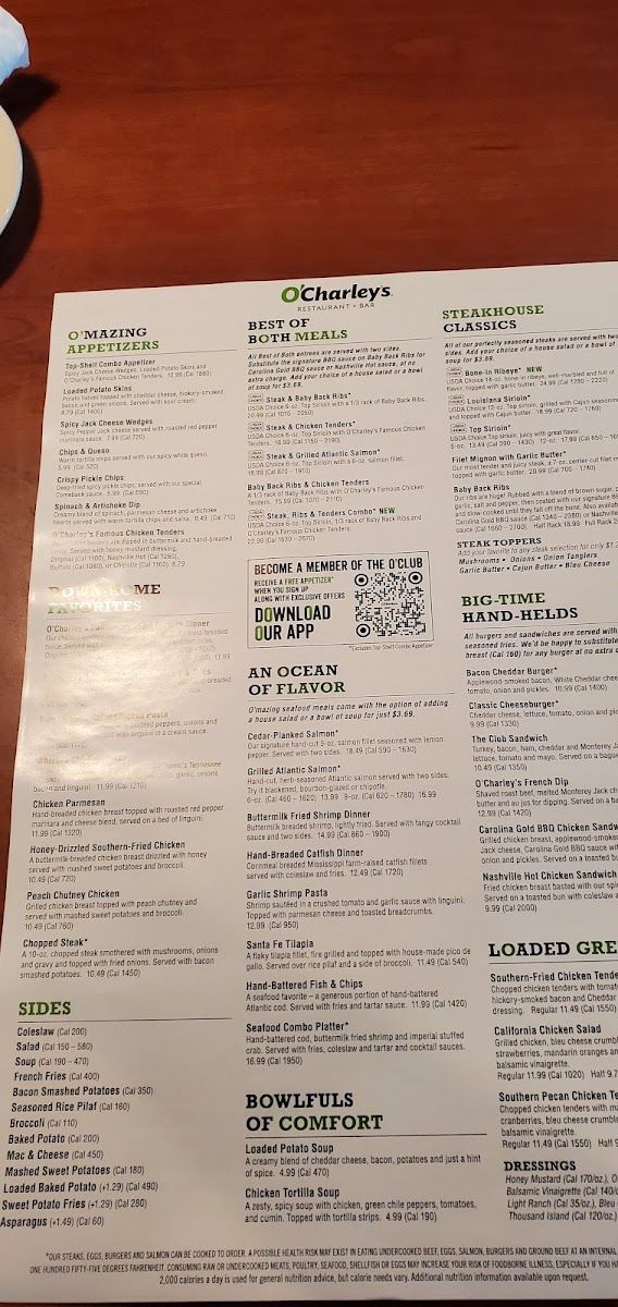 O'Charley's Restaurant & Bar - Elizabethtown Menu